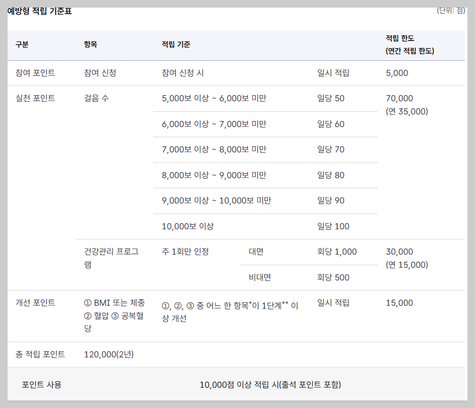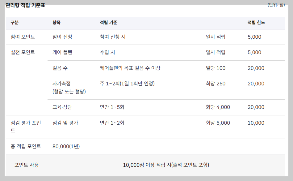예를 들어, 하루 만보 걷기, 혈압·혈당 자가측정, 건강관리 교육 수료 시 포인트가 쌓이는데요