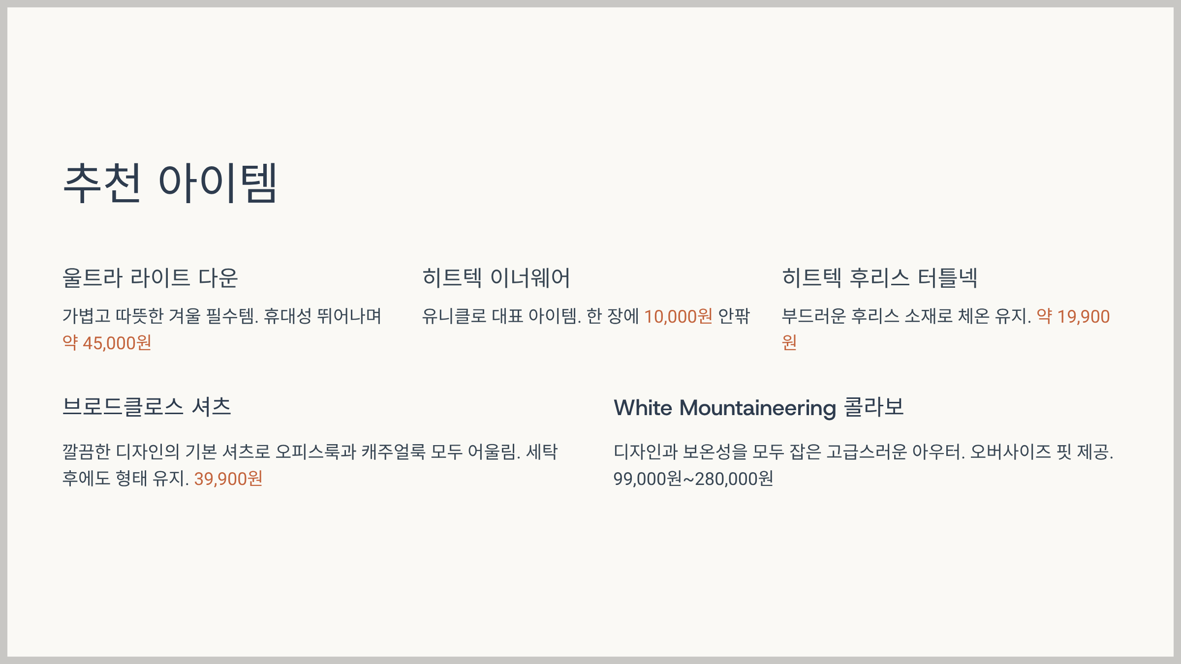 겨울철 데일리룩부터 보온 아이템까지 알차게 구성됐답니다.