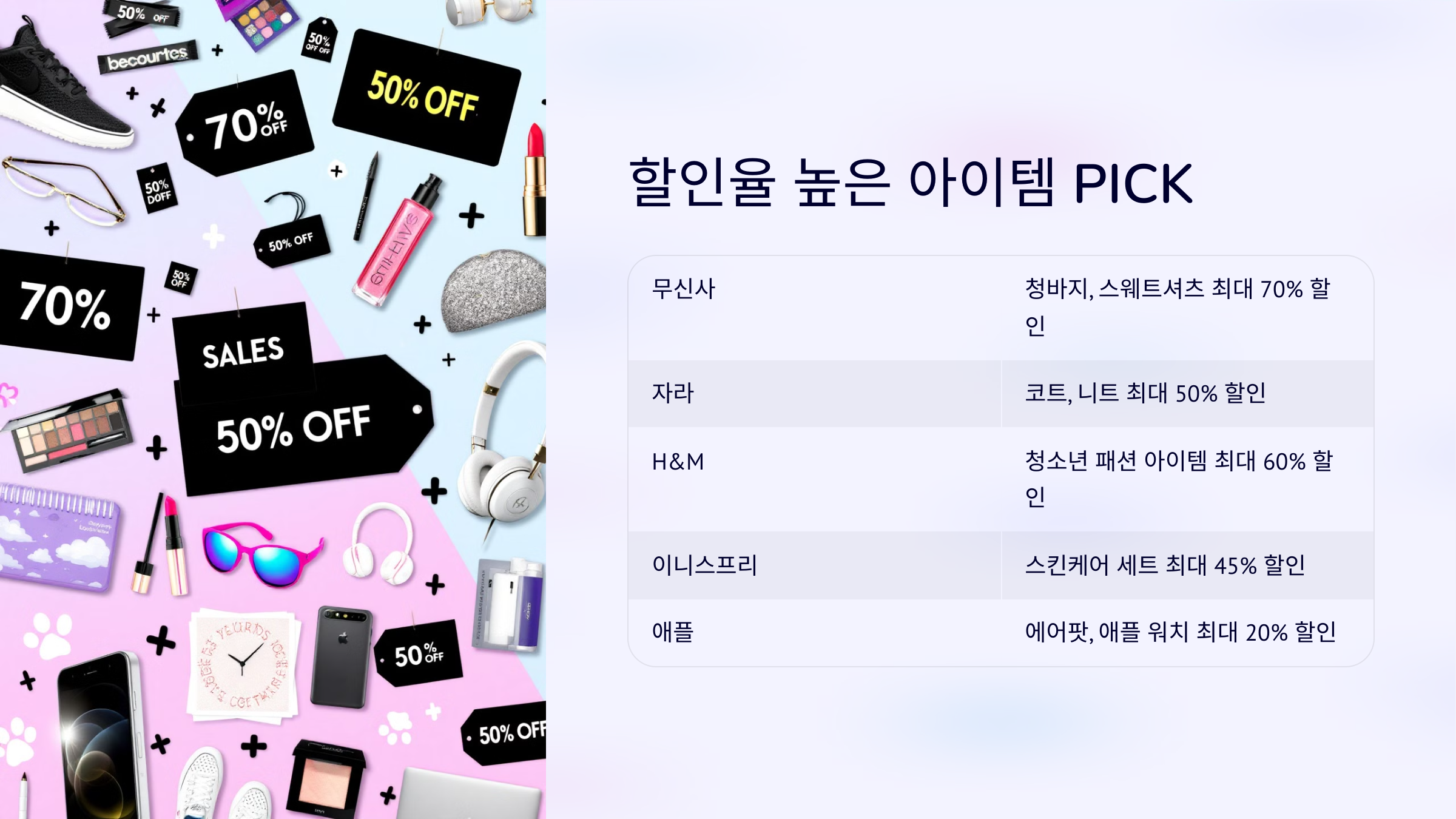 - 패션: SPA 브랜드부터 명품까지, 옷장을 새롭게 채울 기회! 👗👠