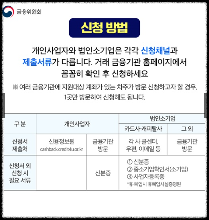 - 방문 신청: 거래 금융기관을 직접 방문하여 신청하실 수 있어요. 🏦