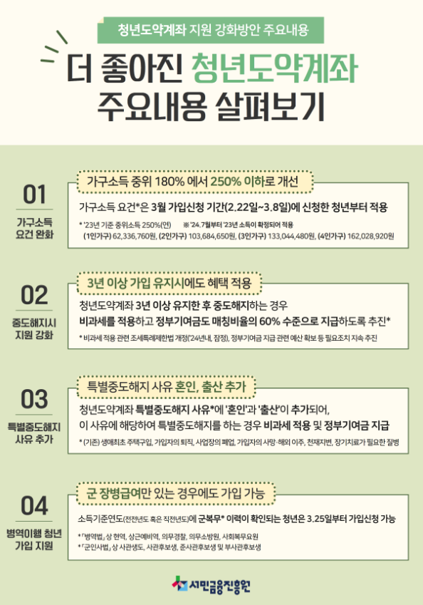 2025년부터 강화된 혜택을 제공하는 청년도약계좌를 통해 청년들이 안정적인 자산을 형성하고, 미래를 위한 든든한 재무 기반을 마련하시길 바랍니다.