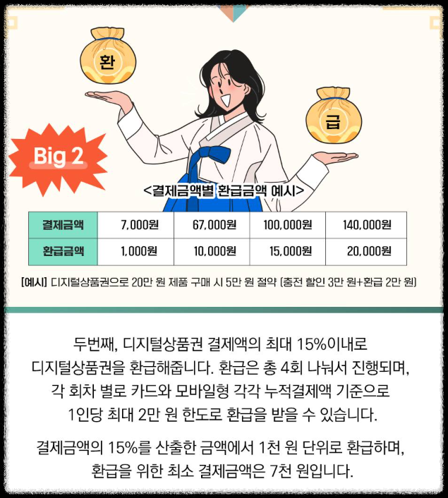 15% 환급 행사: 디지털 상품권 결제액의 최대 15%를 환급 (1인당 최대 2만 원)