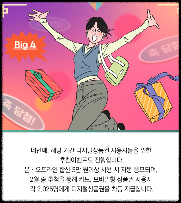 추첨 이벤트: 온·오프라인 합산 3만 원 이상 사용 시 자동 응모, 2,025명에게 디지털 상품권 증정