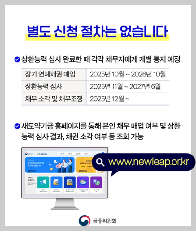 새도약기금은 금융기관이 보유한 장기 연체 채권을 매입한 뒤, 개인의 상황에 따라 소각 또는 조정을 진행합니다.