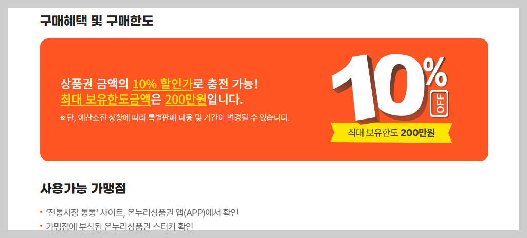 원칙적으로는 오프라인 전통시장 중심으로 사용되며, 온라인 쇼핑몰은 대부분 사용이 제한됩니다.