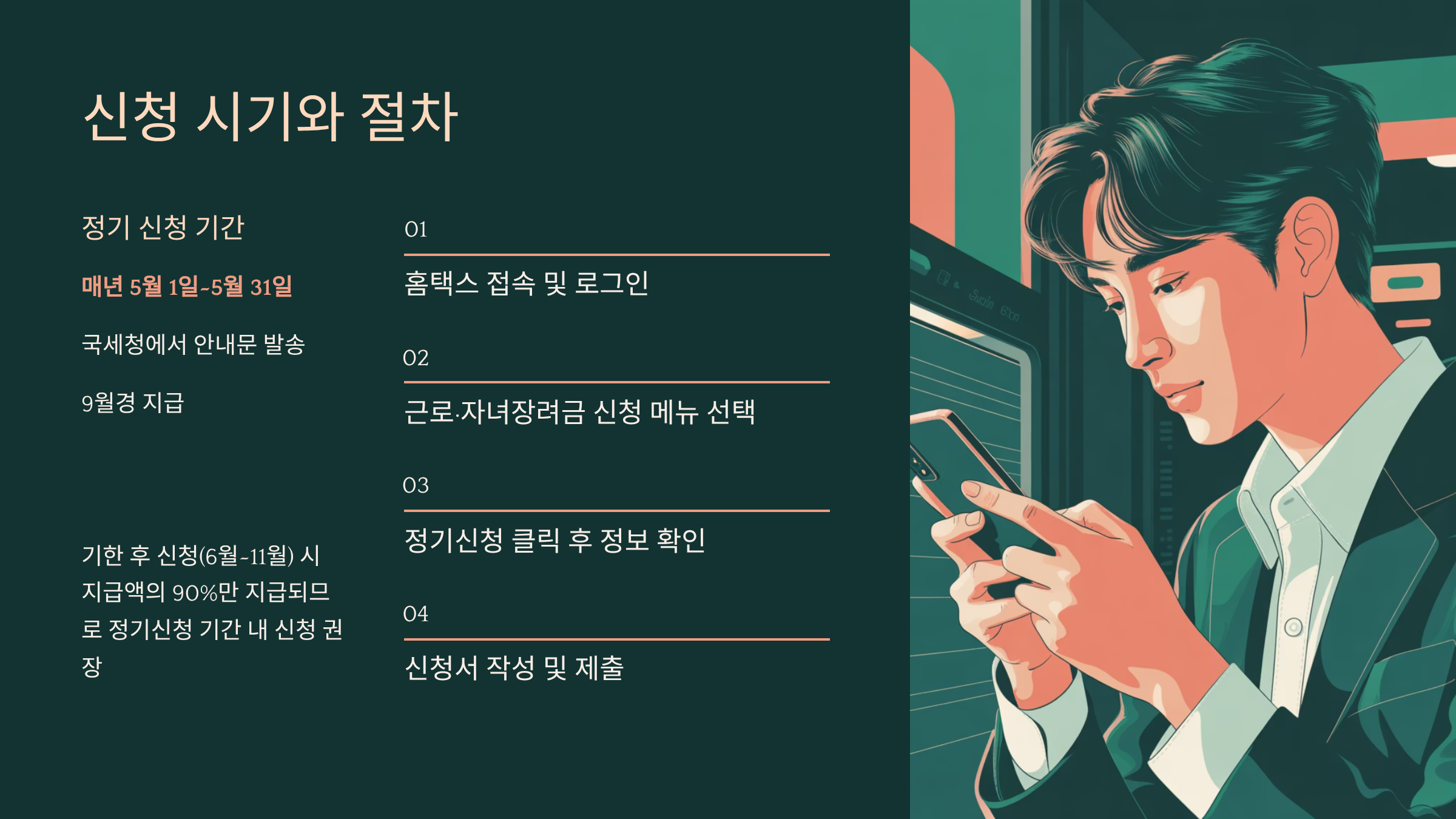 국세청에서 신청 대상자에게 안내문을 발송하며, 홈택스 또는 손택스(모바일 앱)로 간편하게 신청할 수 있습니다.