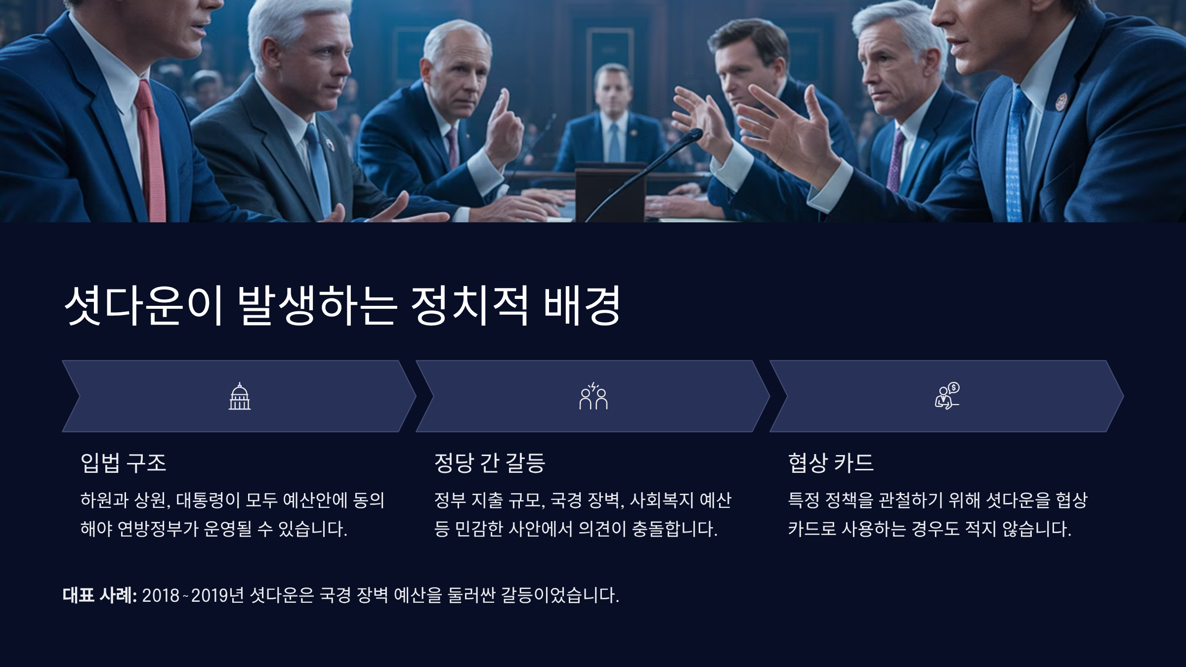 미국처럼 예산안 갈등이 반복된다면, 신뢰받는 행정 운영은 점점 멀어질 수밖에 없습니다.
