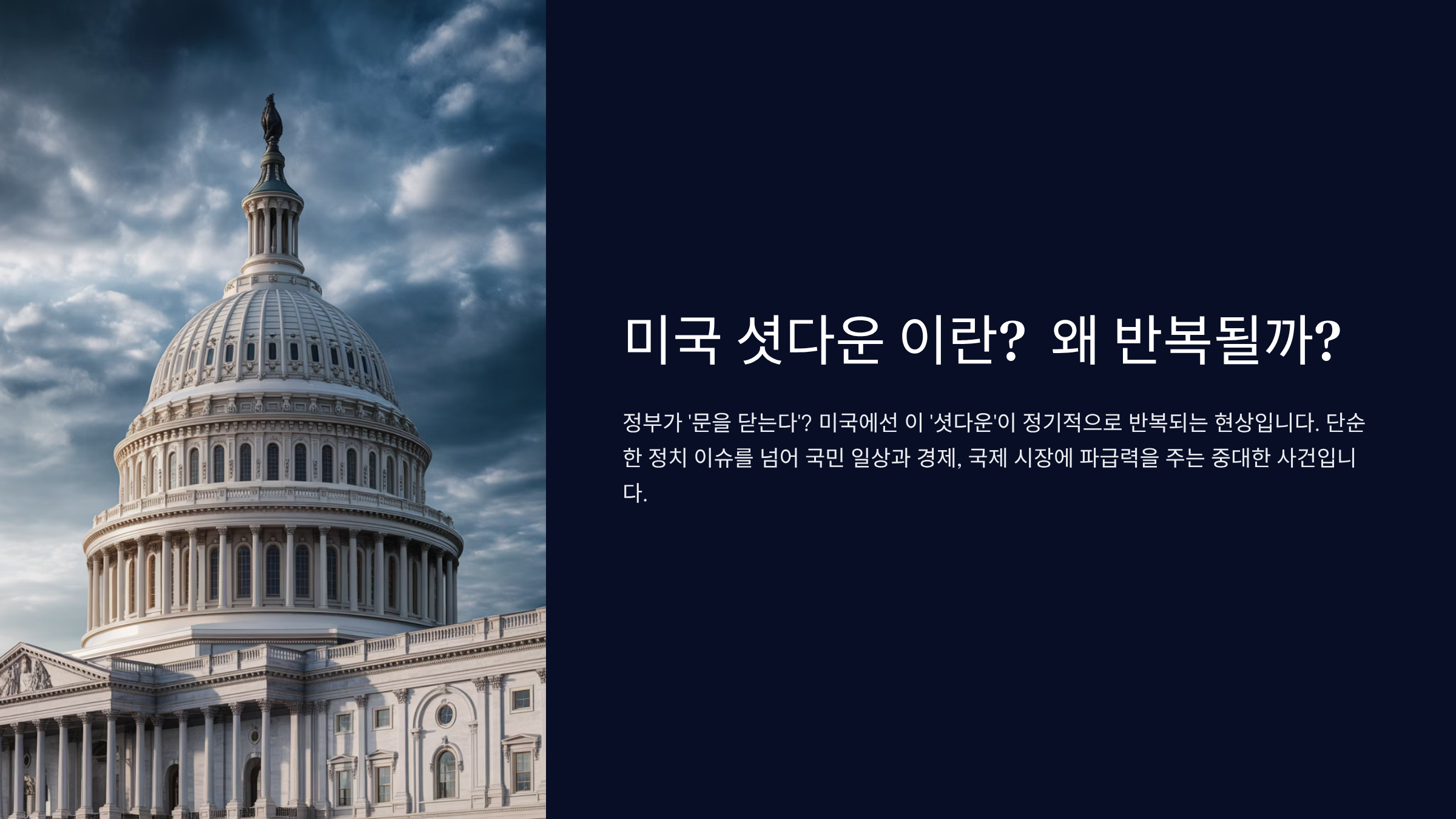 이 글에서는 미국 셧다운이 무엇인지, 왜 발생하며 어떤 영향을 미치는지까지 한눈에 정리해보겠습니다.