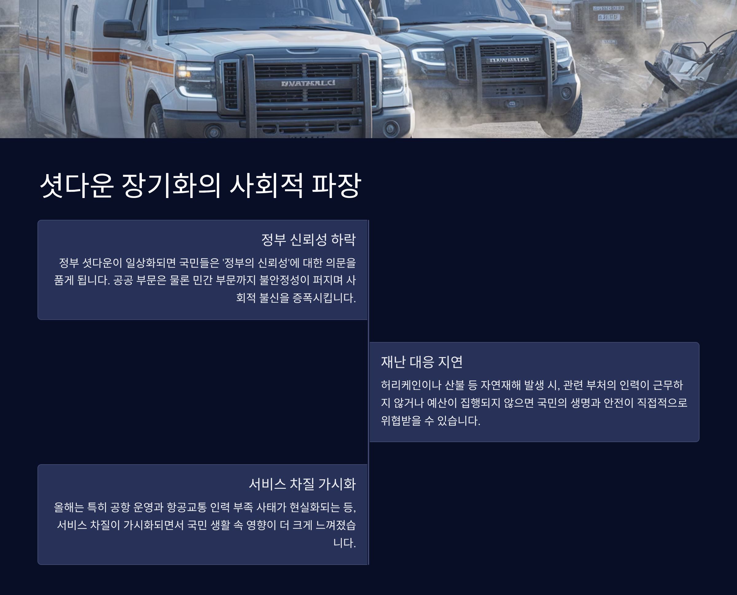 셧다운은 단순한 정부 중단이 아닌, 우리 모두의 삶에 영향을 주는 복합적인 문제입니다.