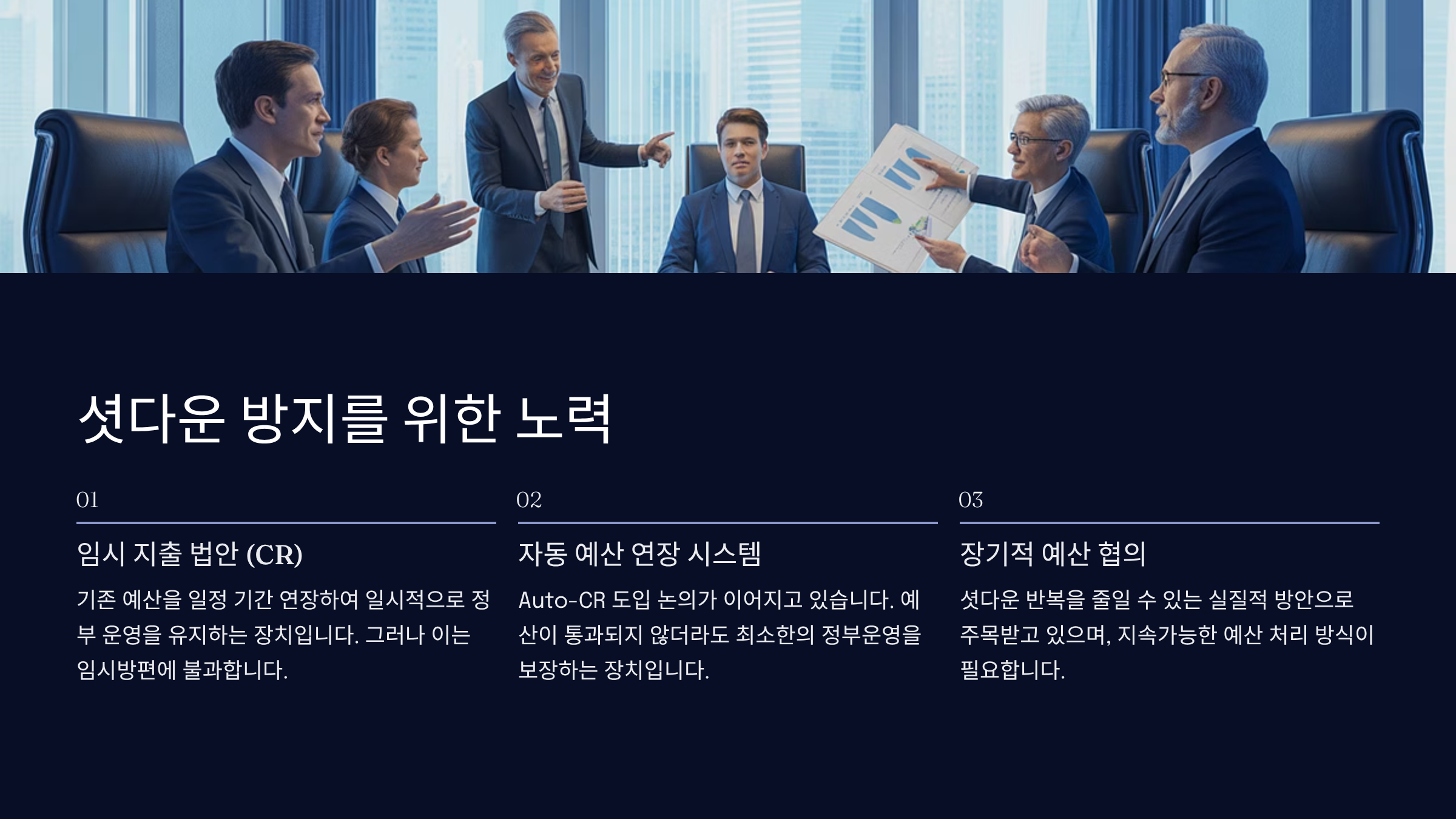 그러나 이 역시 임시방편에 불과하며, 장기적인 예산 협의가 필요합니다.